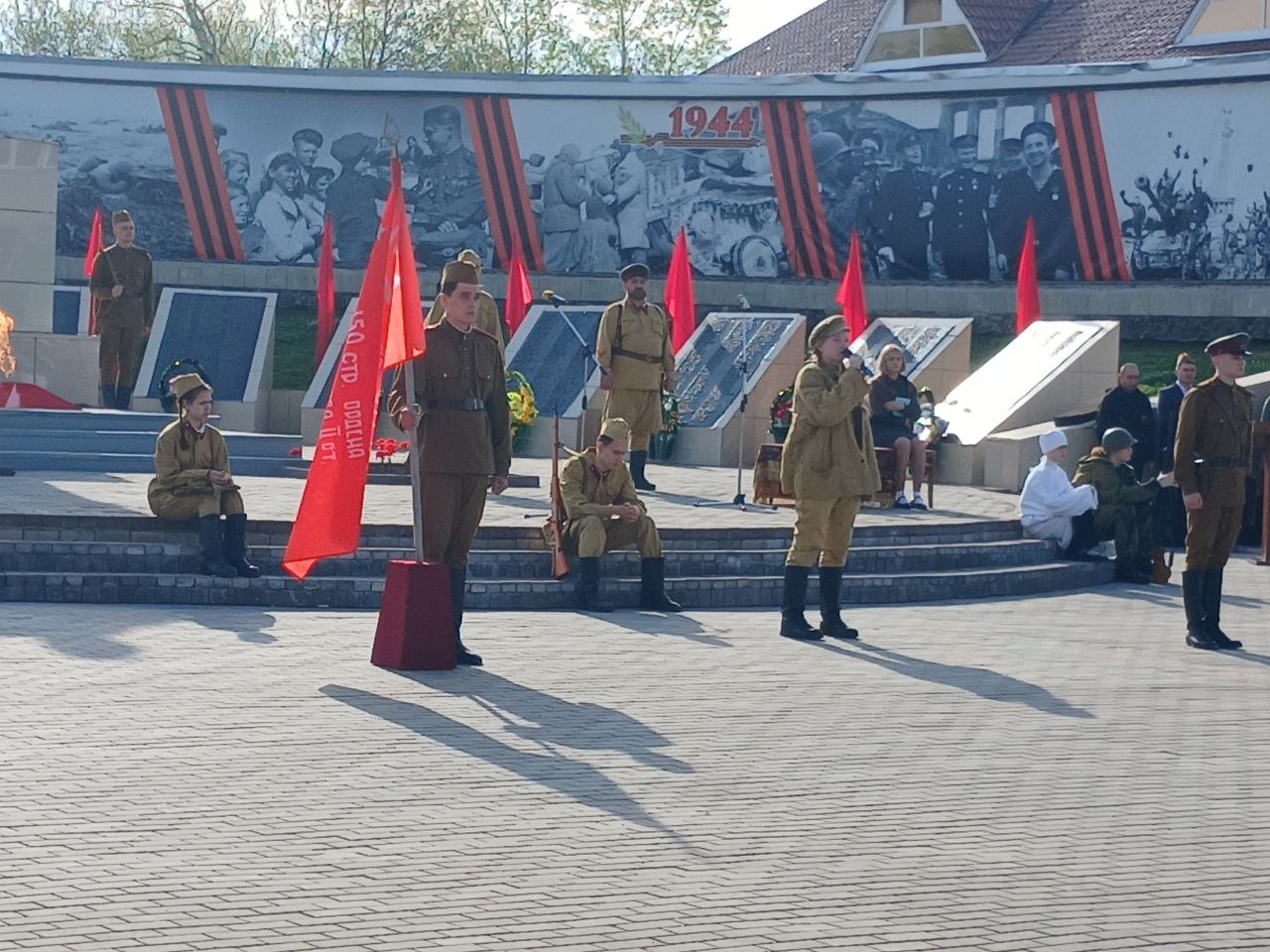 С самого утра сотрудники дома творчества, выпускники и действующие курсанты ВПК «Медведь» участвовали в Митинге «У священного огня». Юнармейцы в форме советских солдат несли почётный караул, возлагали венок и участвовали в литературной постановке под руководством клуба исторической реконструкции «ТАЙДОН». Так же они сопровождали колонну Бессмертного полка и участвовали в военно-исторической реконструкции сражений Великой Отечественной войны «Бой местного значения».