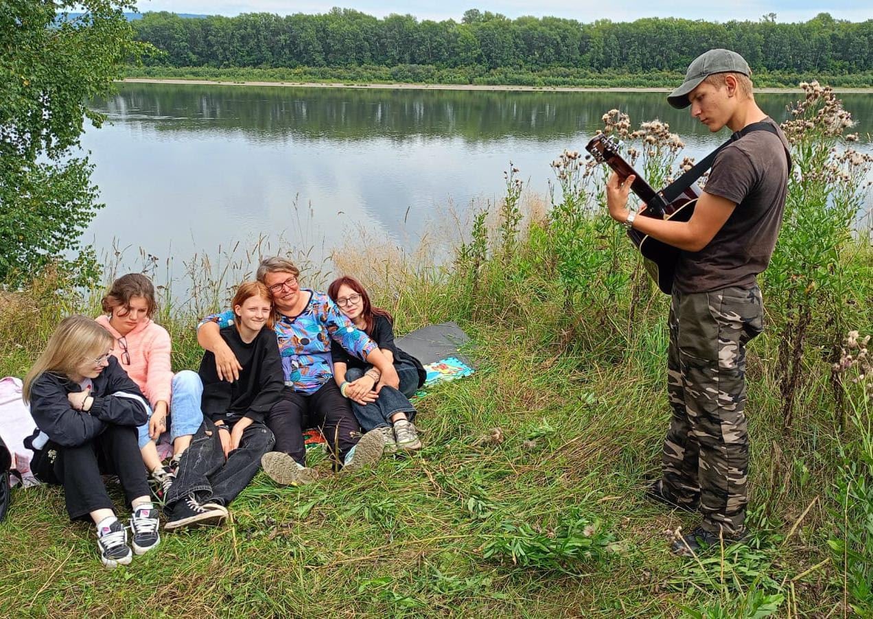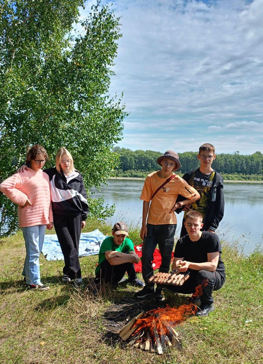 8 августа подростки в сопровождении педагога Светланы Николаевны Ковалёк шумно и весело провели день на высоком берегу реки Томь.