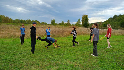 Увлекла всех игра в бадминтон, а нехватку ракеток компенсировали подручными средствами: коробкой, сланцами и просто ладонями. Подкрепляли силы чаем с бутербродами.