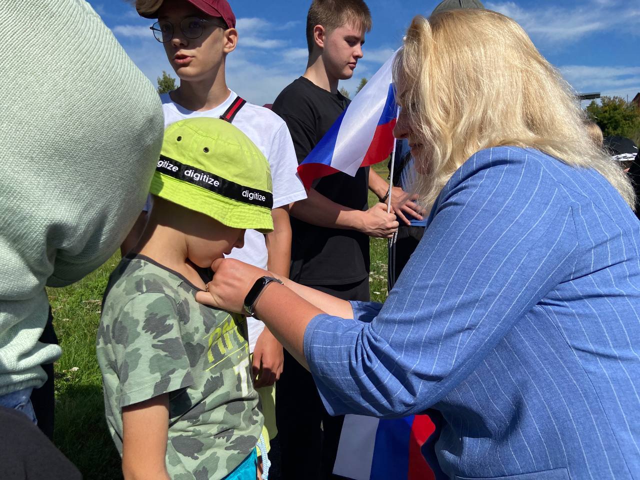 В рамках Всероссийской патриотической акции «Российский триколор» участники мероприятия получили георгиевские ленточки – символ гордости за нашу страну.
