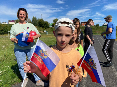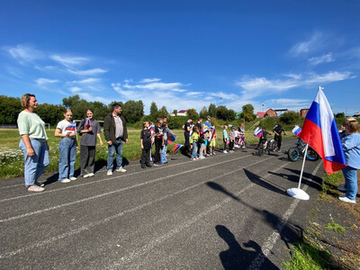 Программу продолжил велопробег «Флаг моего государства». Организованная колонна юных патриотов – крапивинцев проехала по центральному стадиону посёлка, украсив каждый велосипед флагами России.