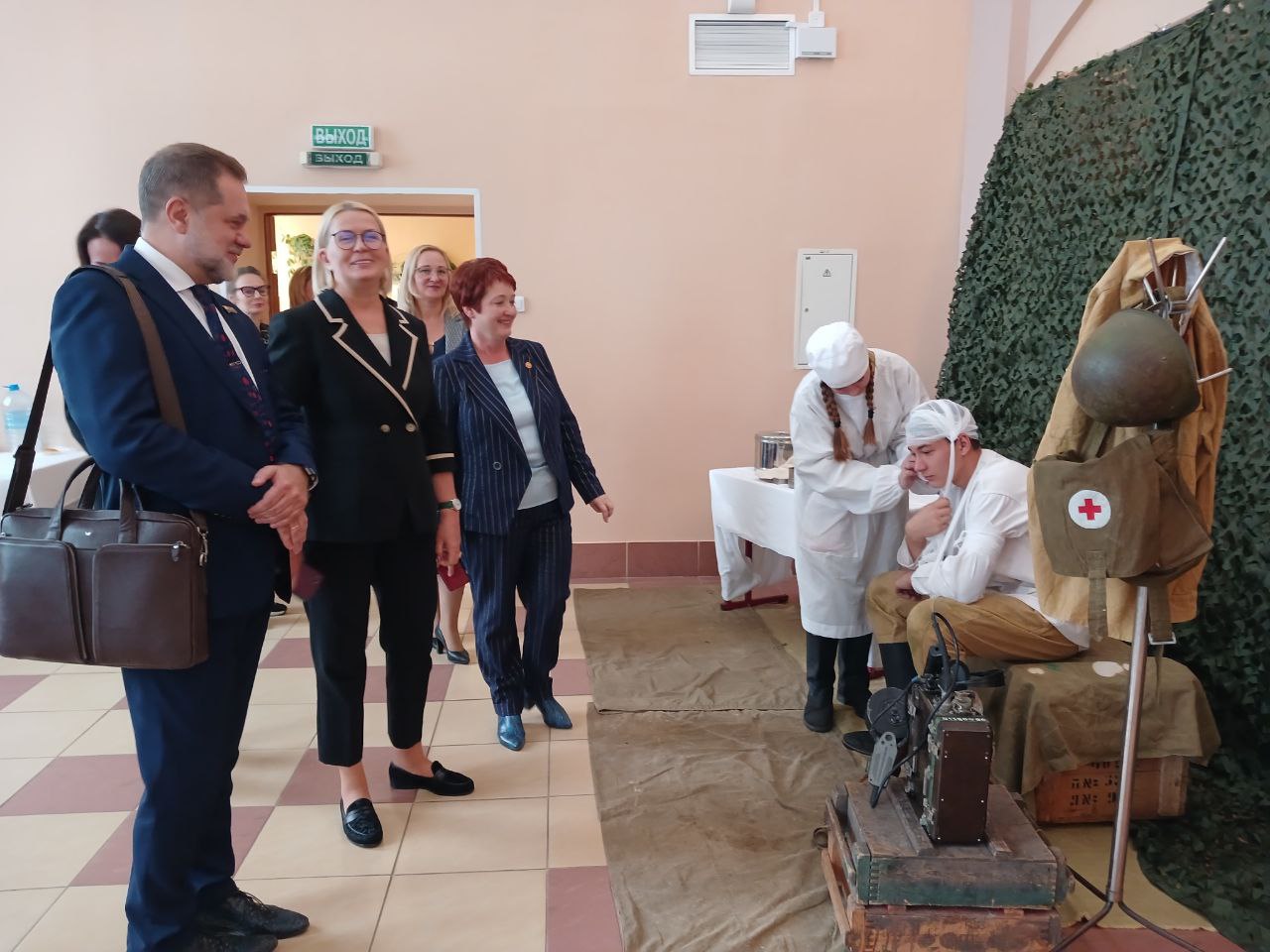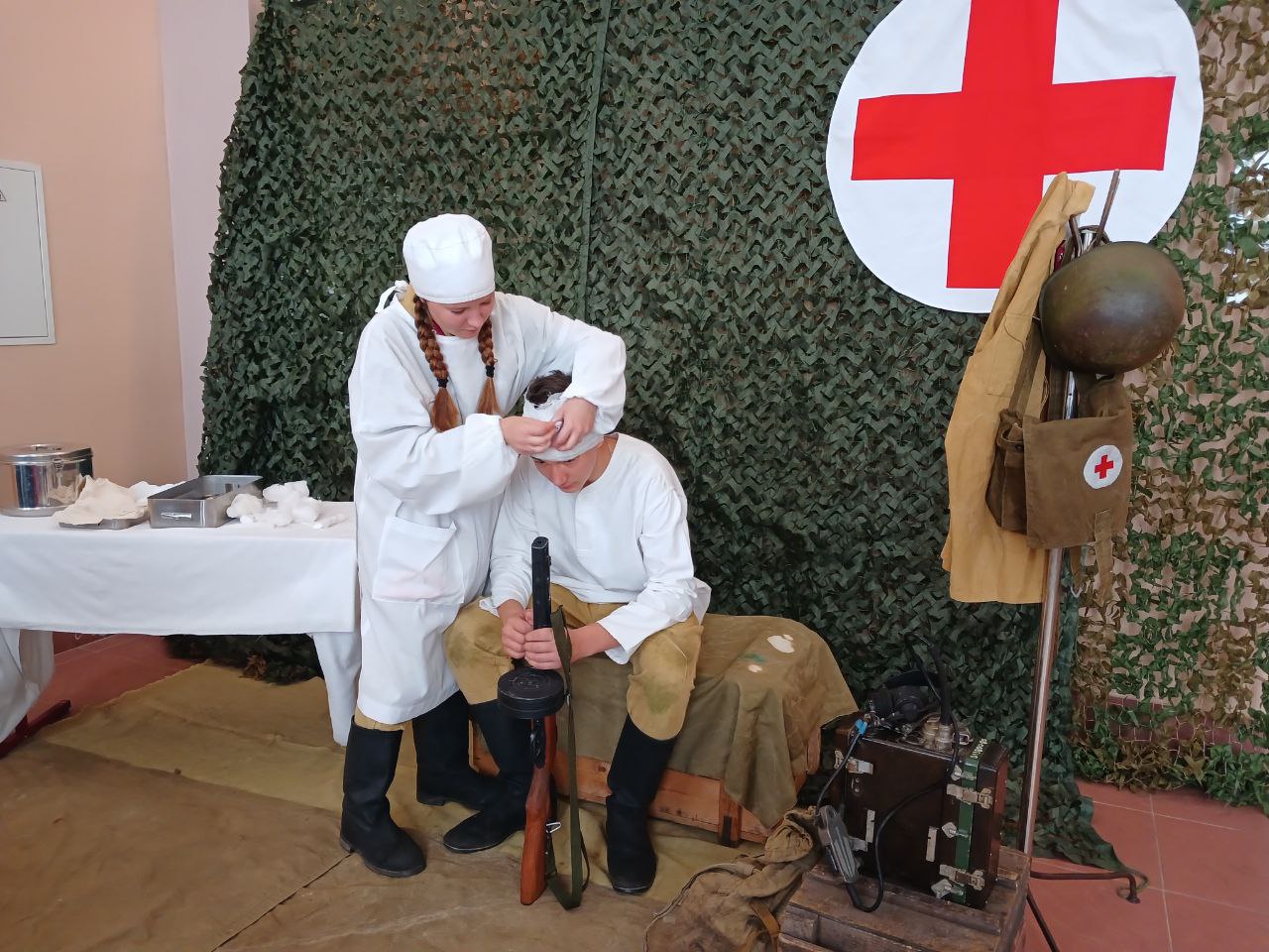 К реконструкции подключились и медицинские работники. Специалисты рассматривали инструменты и рассказывали юным патриотам об их назначении.