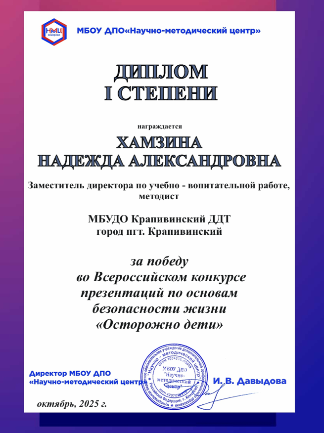 Работа была положительно отмечена экспертами и Надежде Александровне вручен диплом победителя 1 степени. Здорово, когда методические находки наших коллег получают высокую оценку педагогического сообщества Кузбасса!
