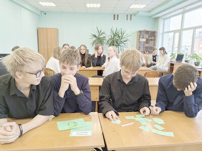 Каждая команда «открыла» свою организацию, ребята разработали логотип и фирменный стиль, презентовали вид деятельности своей организации, составили список имеющихся ресурсов. После обмена ресурсами «закипела» работа. Юные специалисты разработали свой инновационный продукт и презентовали одноклассникам. Например, «появились» идеи разработки пищевого принтера с оригинальным дизайнерским принтом, состав квантовой шаурмы, организации предлагали свои медицинские и транспортные услуги, а для смельчаков «изобрели» машину времени.