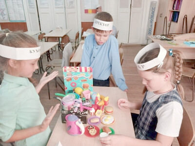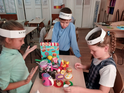 В ходе игры ребята составили список профессий и специальностей, представленных в школе, и хаотично распределили между собой роли. Среди участников игры появились директор, учителя, повар, кухонный работник, водитель автобуса и библиотекарь. Каждый ребенок старался вжиться в свою роль и показать лучшие результаты в порученном деле.