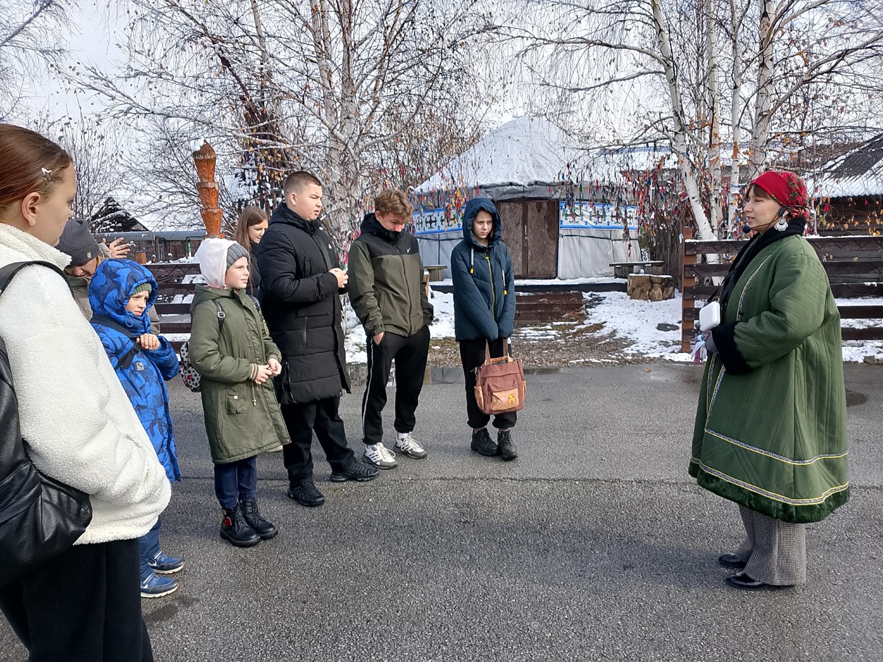 После этого мы отправились на обзорную экскурсию в историко-этнографический музей «Чолкой». Замечательный экскурсовод, научный сотрудник Екатерина Владимировна Сучкова провела ребят сквозь века, рассказывая об истории создания музея, появлении села, и, конечно же, о коренных жителях - шорцах и телеутах. Школьники познакомились с легендами и сказаниями телеутов, поучаствовали в древних обрядах и, по традиции, повязали ленточку на священную березу, загадав самые заветные желания.
