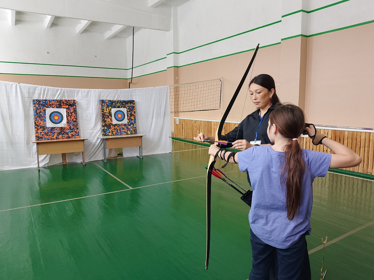 Под руководством Марины Мироновны Алаганчаковой и Жанны Валерьевны Тодышевой, учителя начальных классов, все желающие осваивали искусство стрельбы из лука.