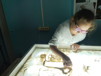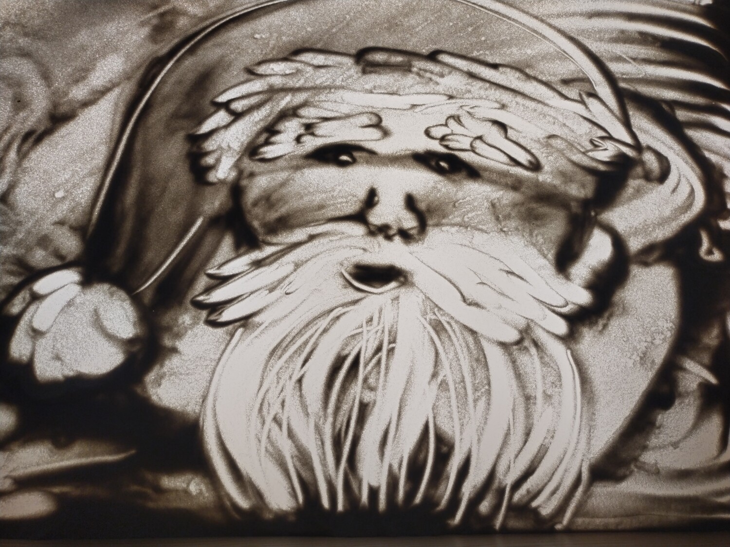 А ребята из объединения «Волшебный песок» воплотили образ Дедушки Мороза на световых песочных столах.