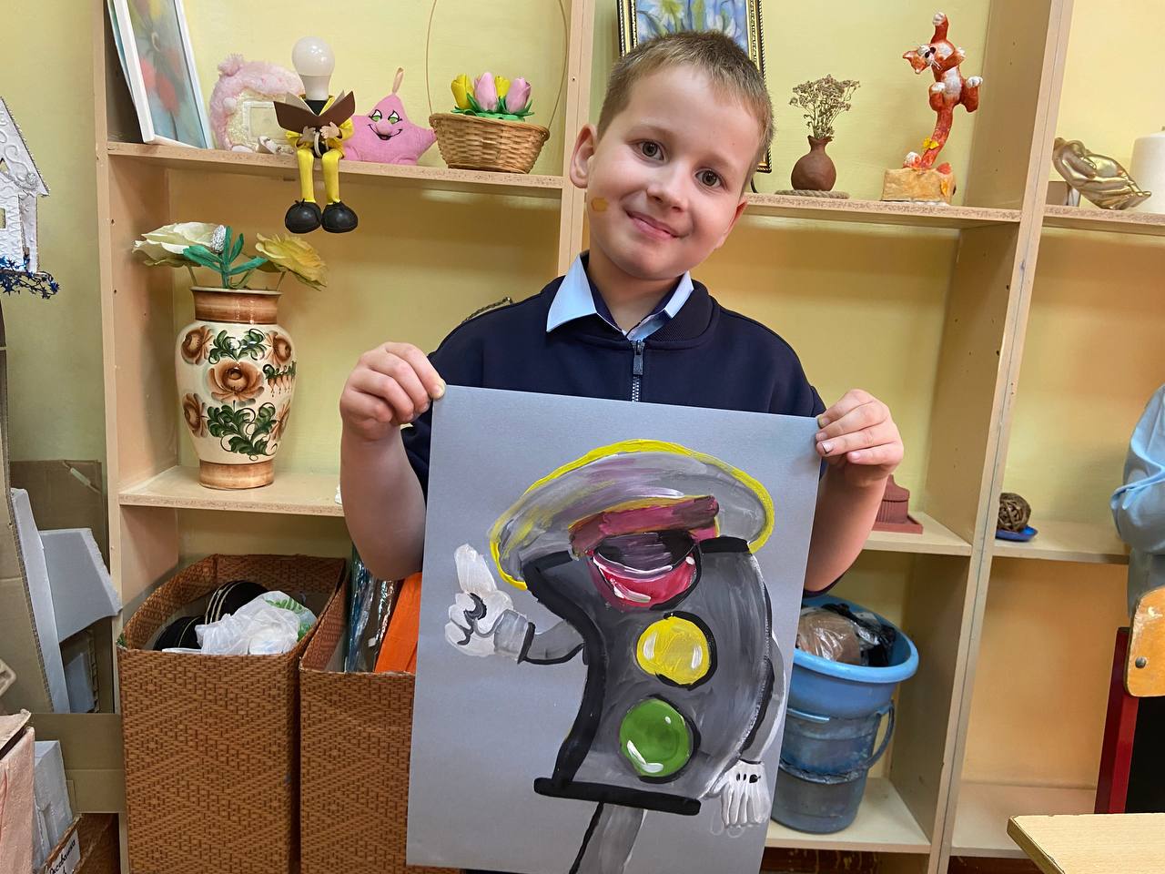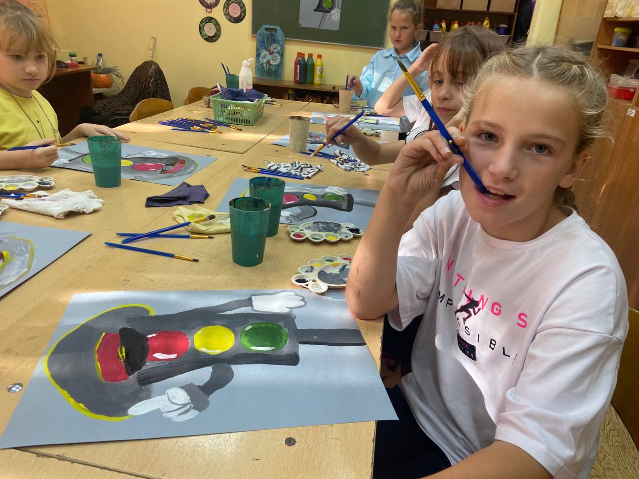 Юные художники из детского объединения «Рисовашка» на тематическом занятии отправились в гости к Светофорычу. Они играли, разгадывали загадки, решали дорожные задачи, вспоминая правила дорожного движения. В завершении – нарисовали портрет веселого доброго Светофорыча.